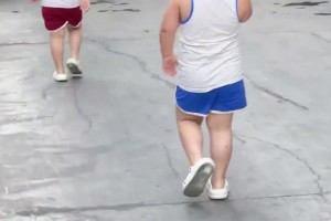 双胞胎女儿穿搭清爽,走路气场十足十分吸睛