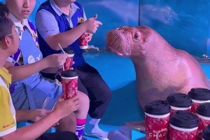 知名茶饮请海象代言,品尝后模样可爱又有趣